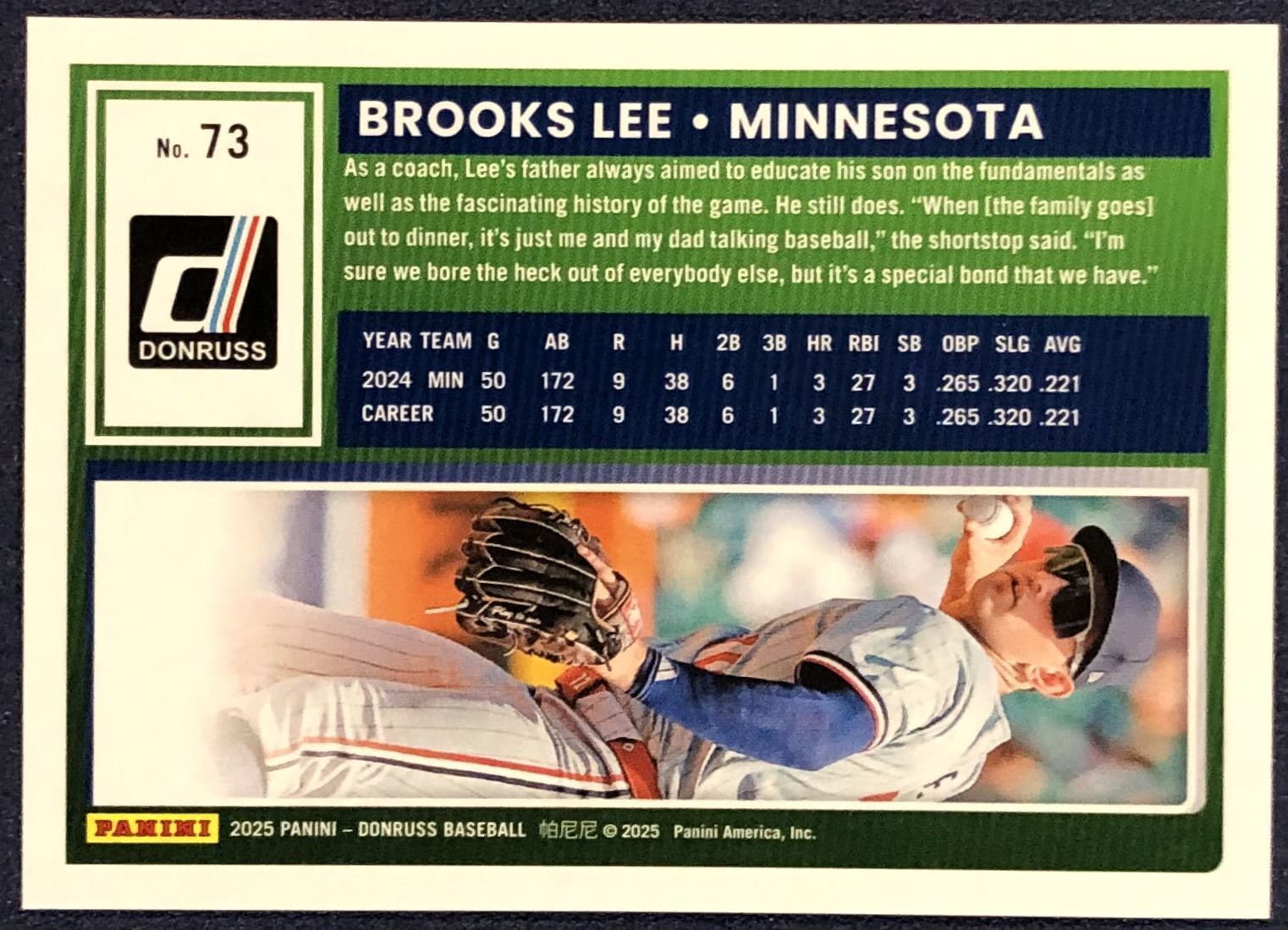 Lot 618 2025 DONRUSS BROOKS LEE ROOKIE CARD