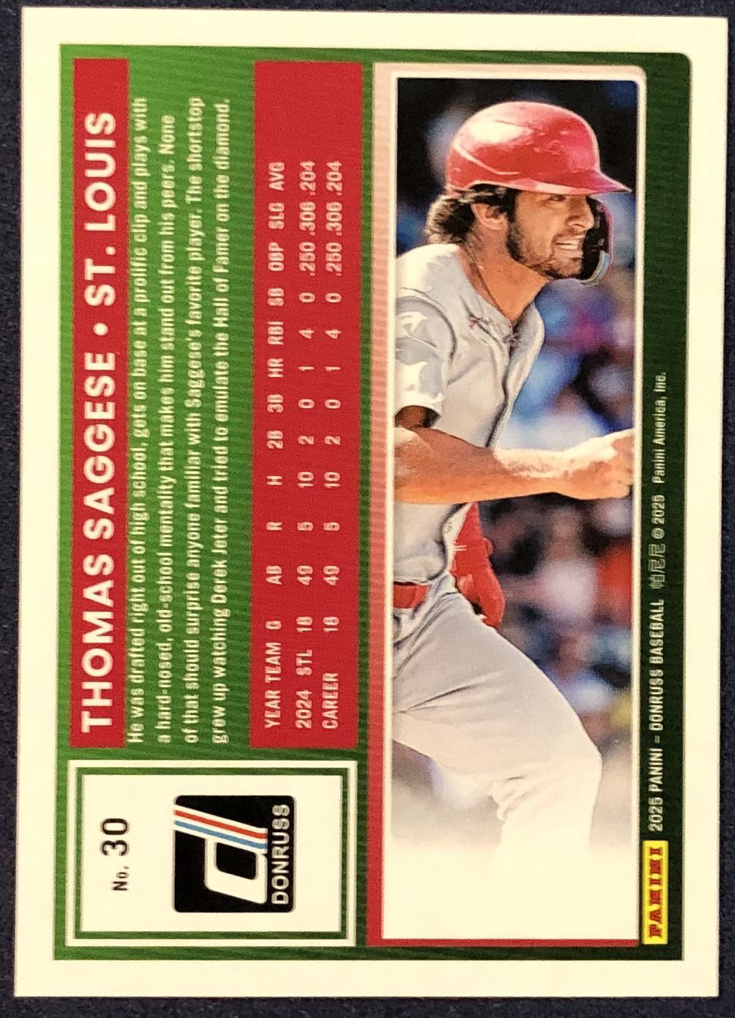Lot 638 2025 DONRUSS THOMAS SAGGESE ROOKIE CARD