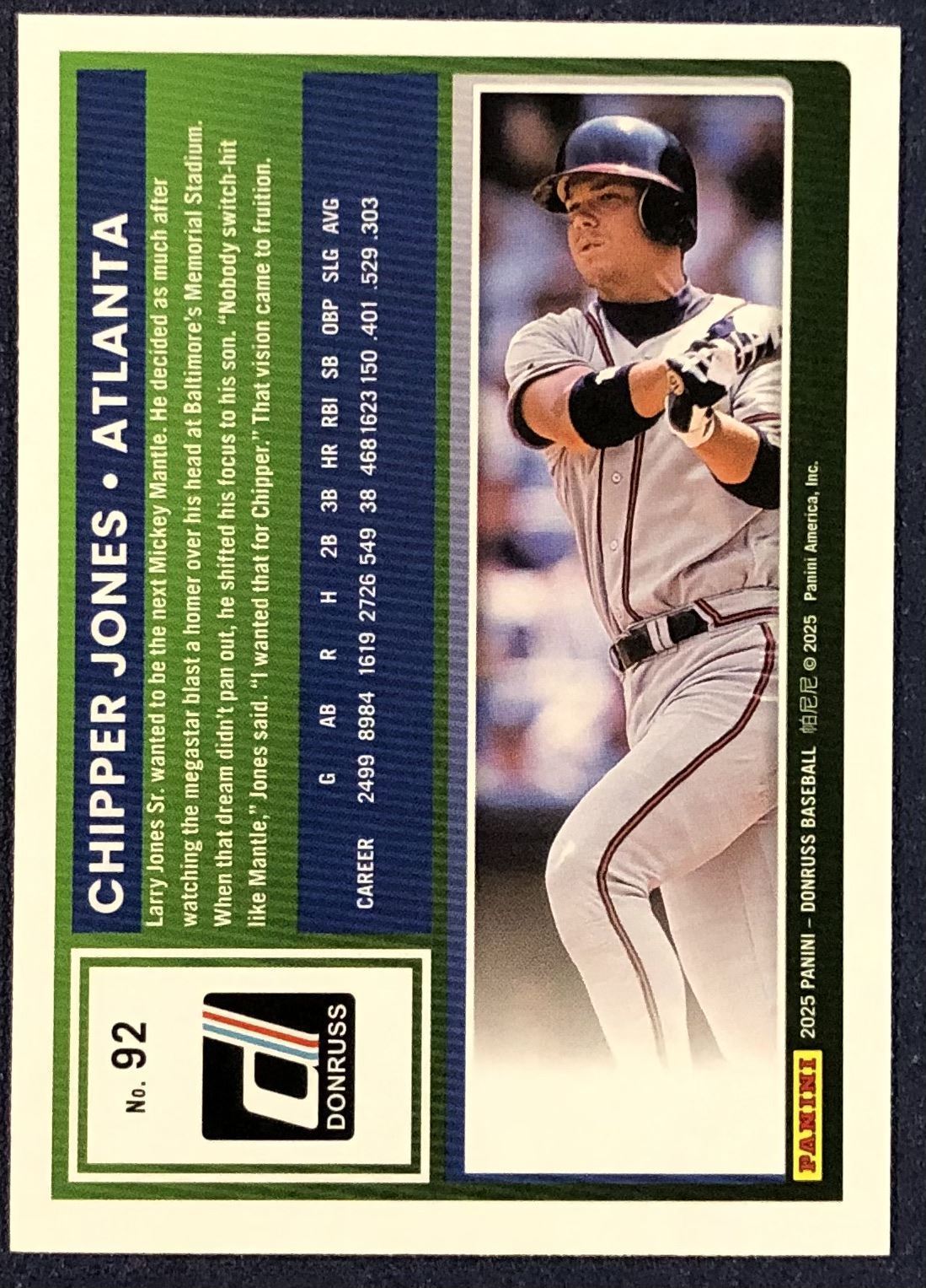 Lot 643 2025 DONRUSS YELLOW SPLASH CHIPPER JONES (HOF)