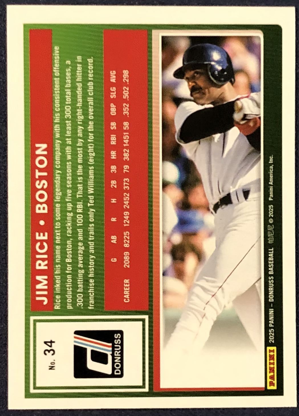 Lot 647 2025 DONRUSS YELLOW SPLASH JIM RICE (HOF)