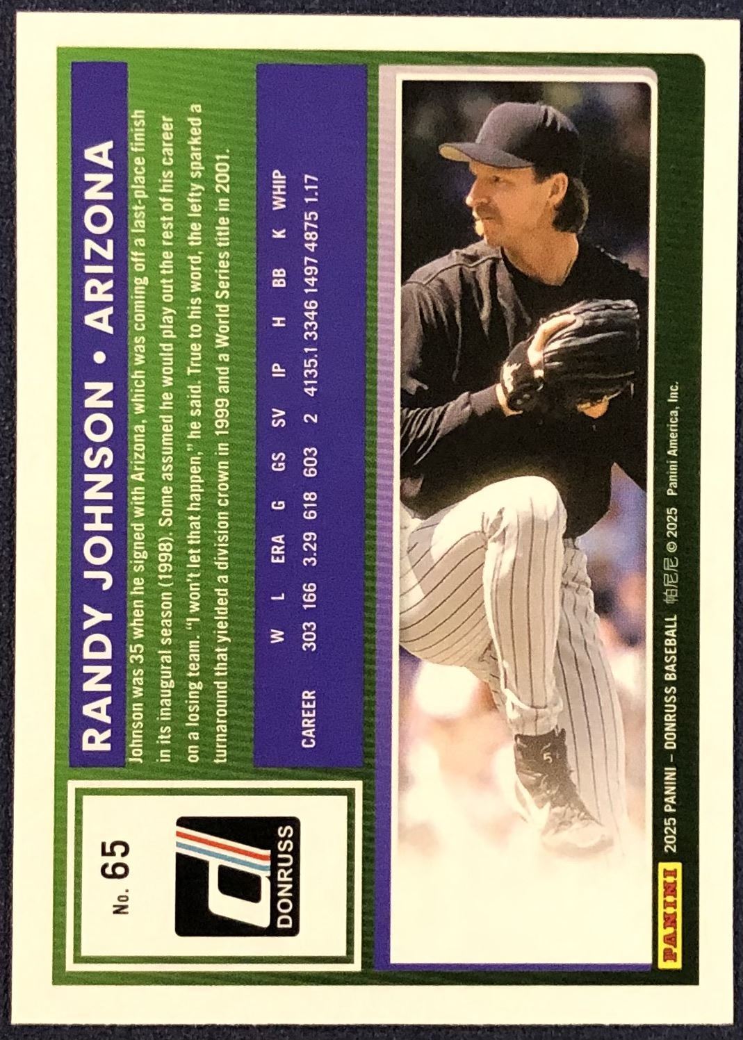 Lot 651 2025 DONRUSS YELLOW SPLASH RANDY JOHNSON (HOF)