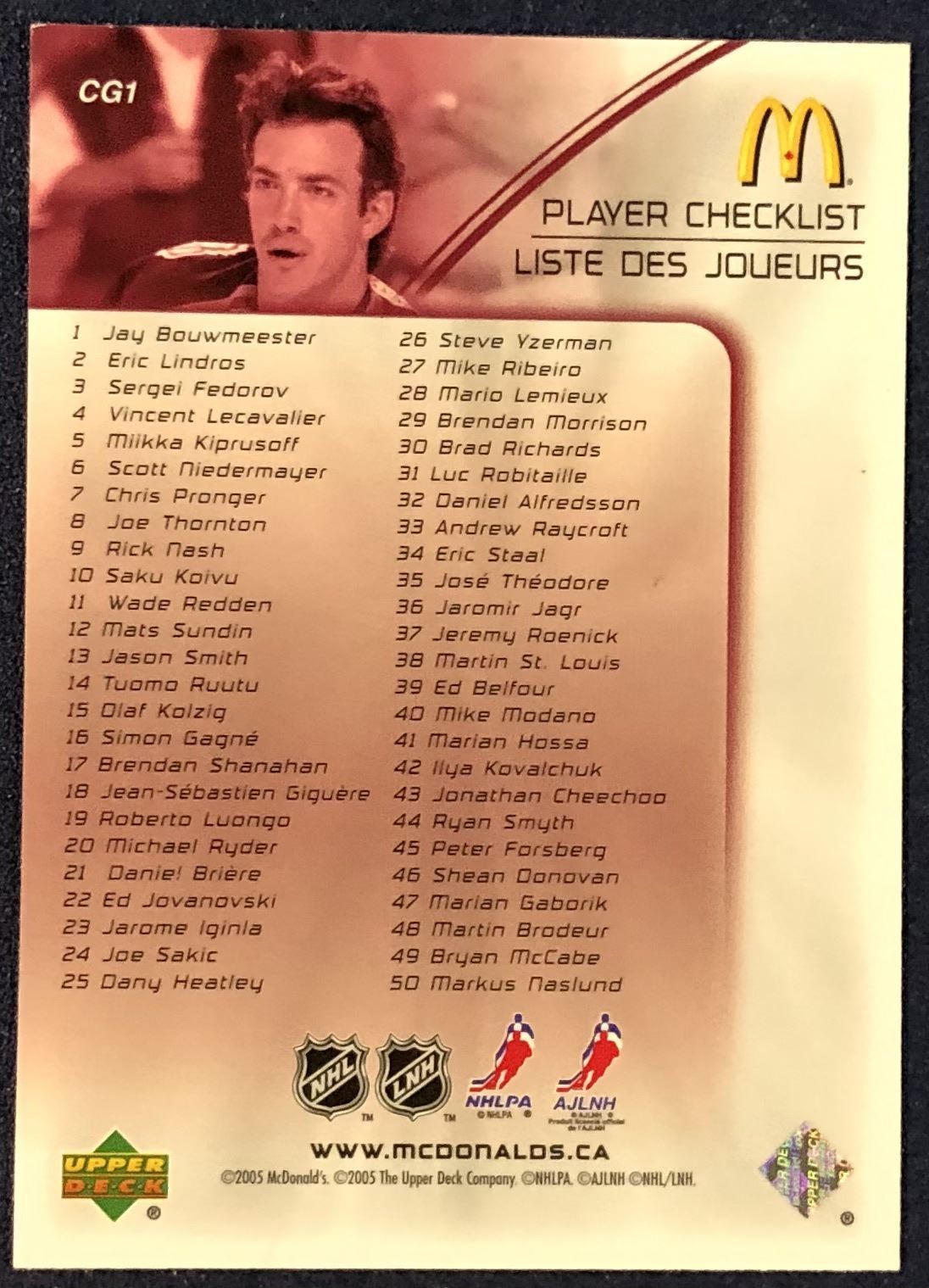 McDonald's card #CG1 NHL, hockey, UD, regional, hall of fame