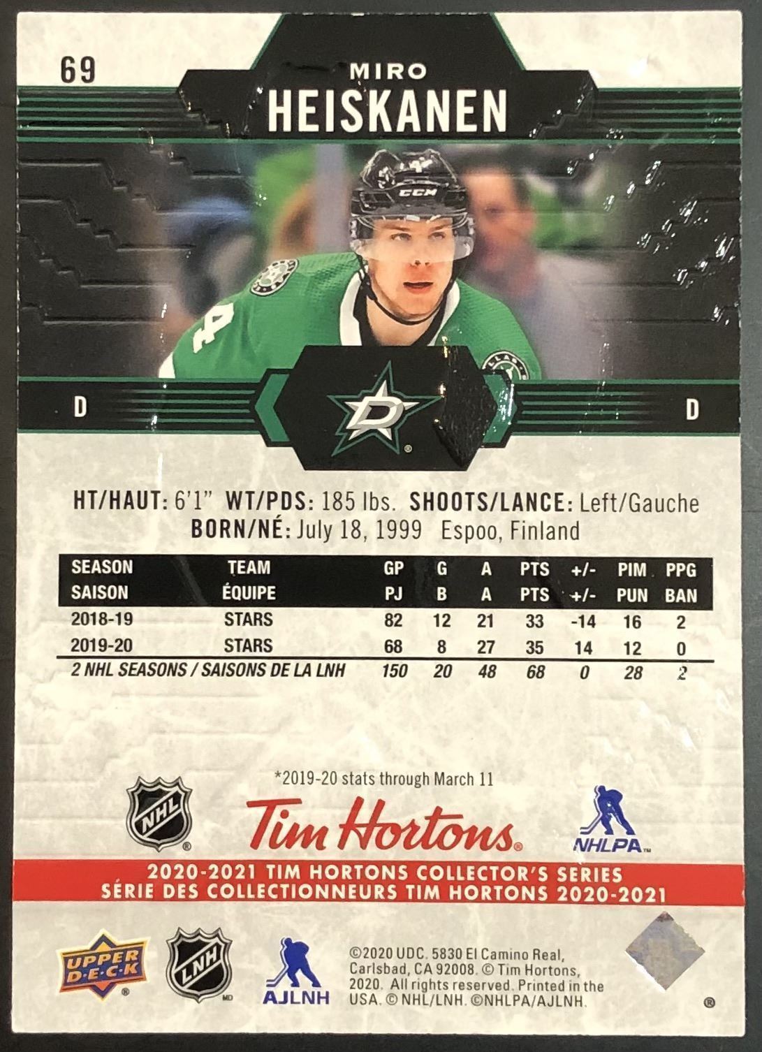 Lot 668 2020-21 UPPER DECK MIRO HEISKANEN