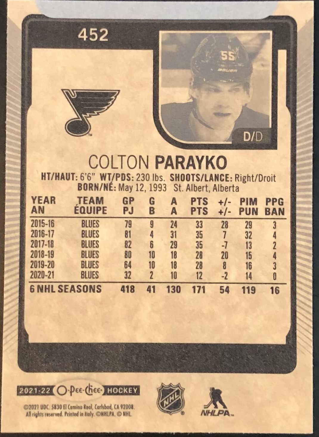 Lot 670 2021-22 O-PEE-CHEE COLTON PARAYKO