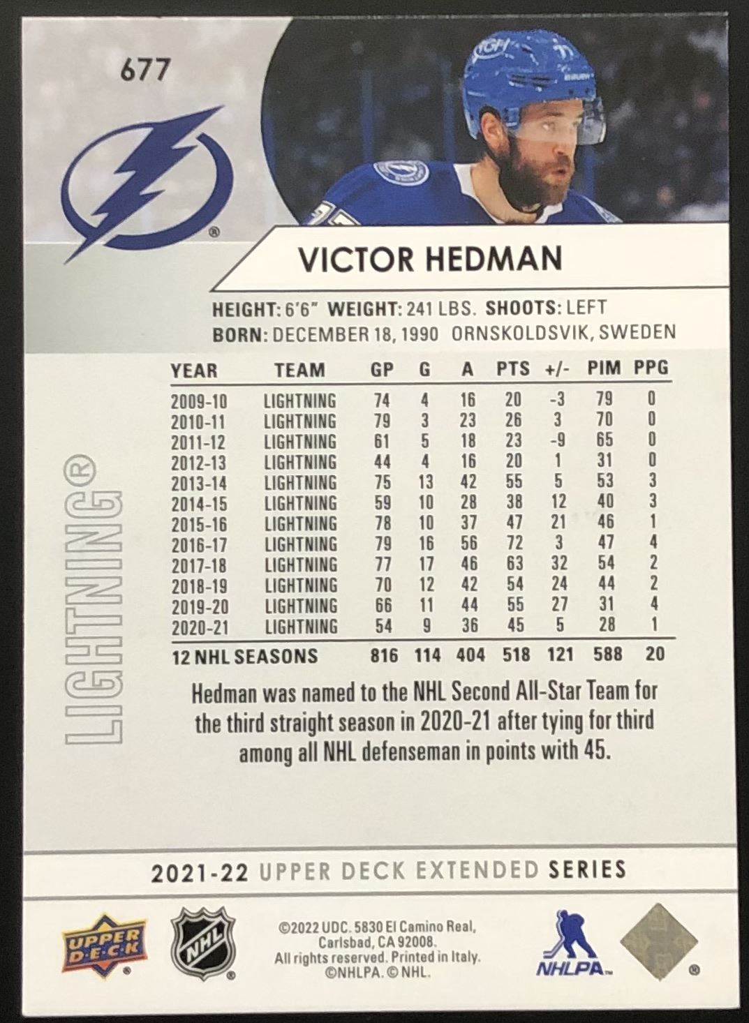 Lot 676 2021-22 UPPER DECK VICTOR HEDMAN