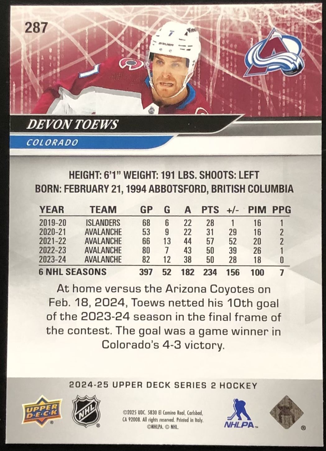 Lot 696 2024-25 UPPER DECK DEVON TOEWS