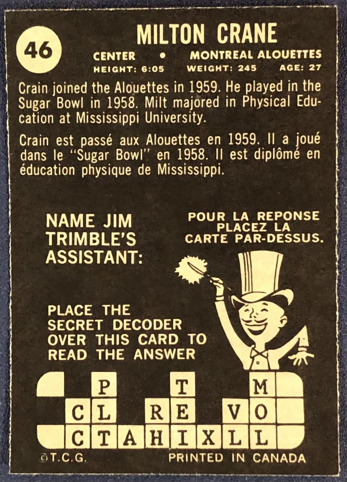 Lot 725 1964 O-PEE-CHEE CFL MILTON CRANE