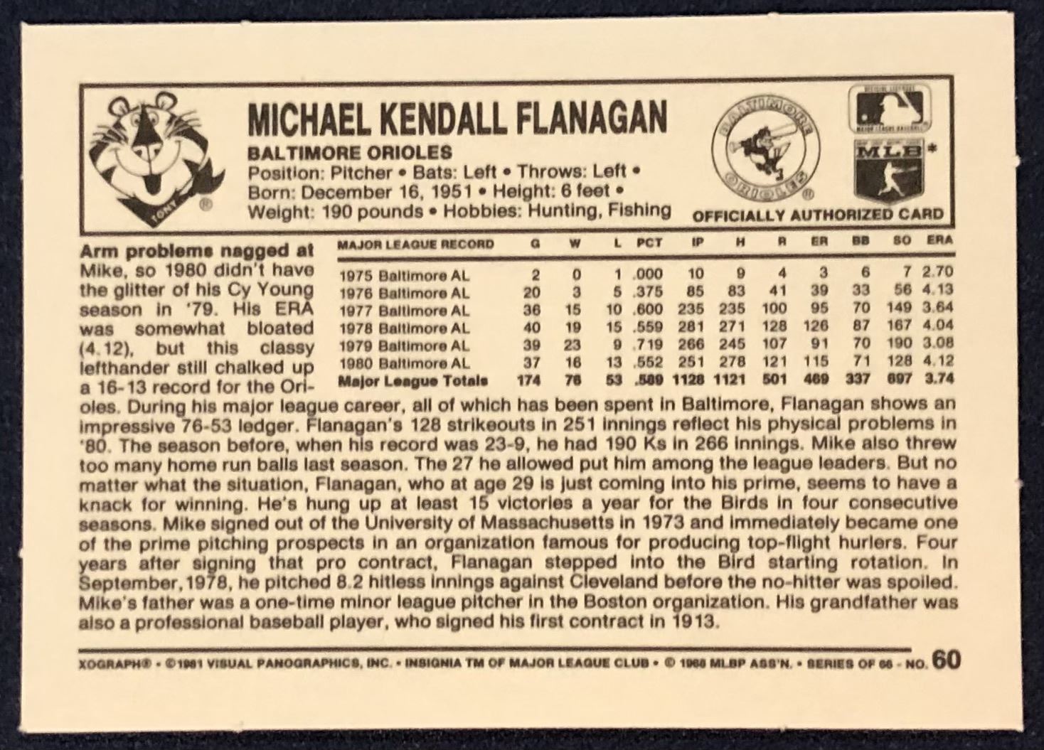 Lot 785 1981 KELLOGGS 3-D BASEBALL MIKE FLANAGAN