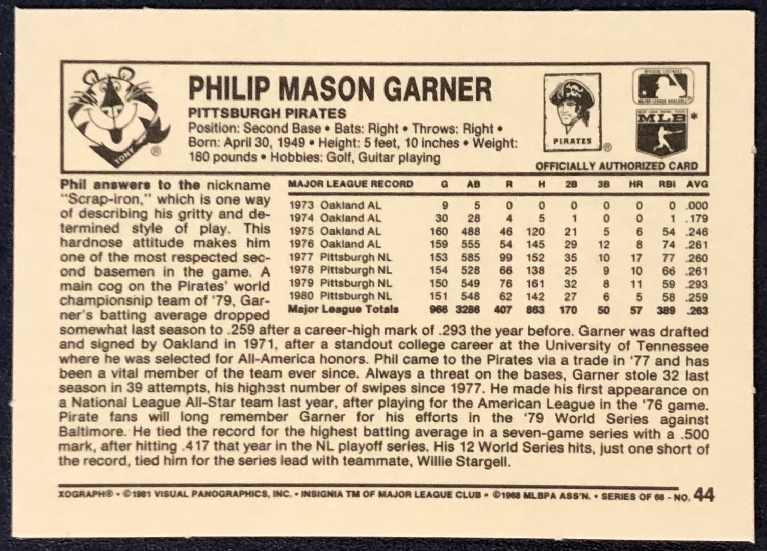 Lot 787 1981 KELLOGGS 3-D BASEBALL PHIL GARNER