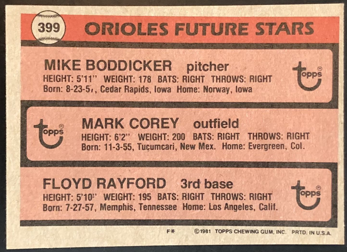 Lot 792 1981 TOPPS MIKE BODDICKER ROOKIE CARD