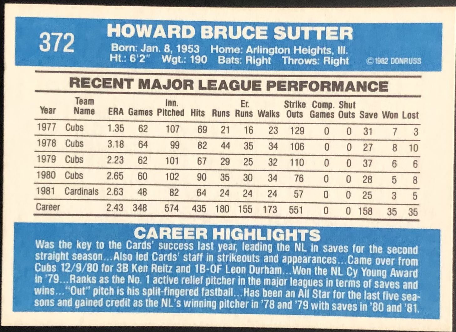 Lot 793 1982 DONRUSS BRUCE SUTTER (HOF)