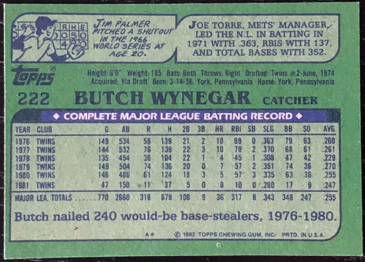 Lot 805 1982 TOPPS BUTCH WYNEGAR ROOKIE CARD