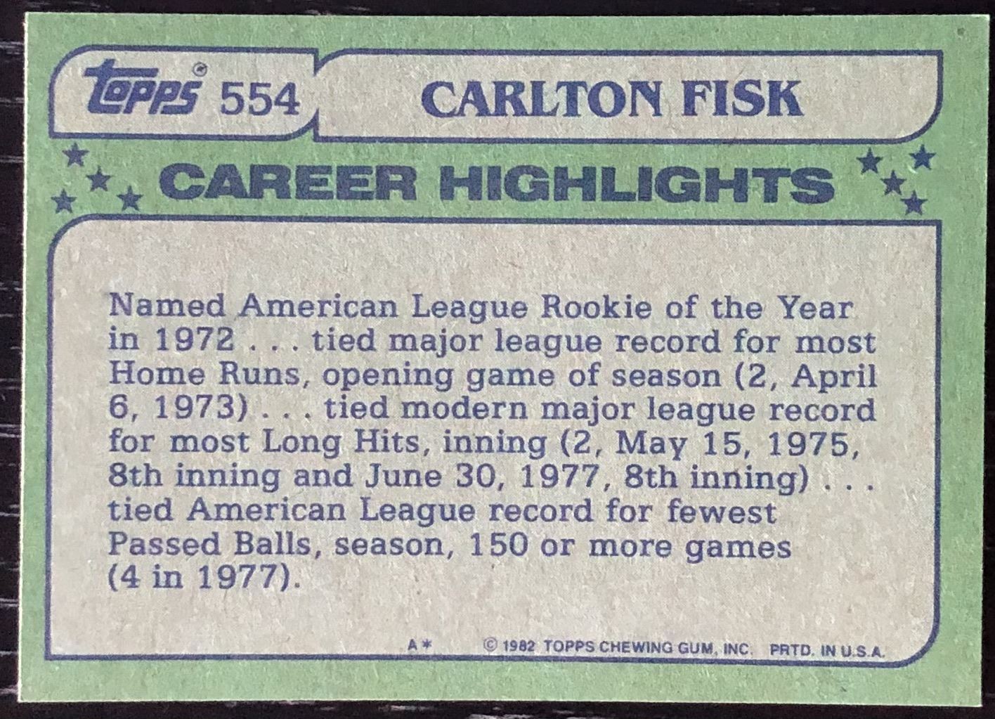 Lot 807 1982 TOPPS CARLTON FISK (HOF)