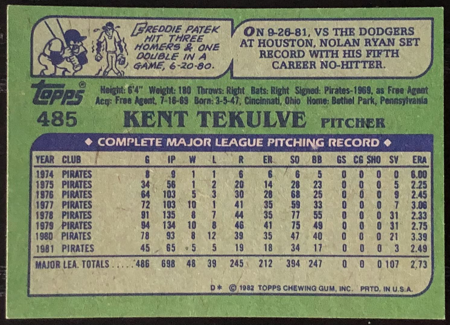 Lot 811 1982 TOPPS KENT TEKULVE
