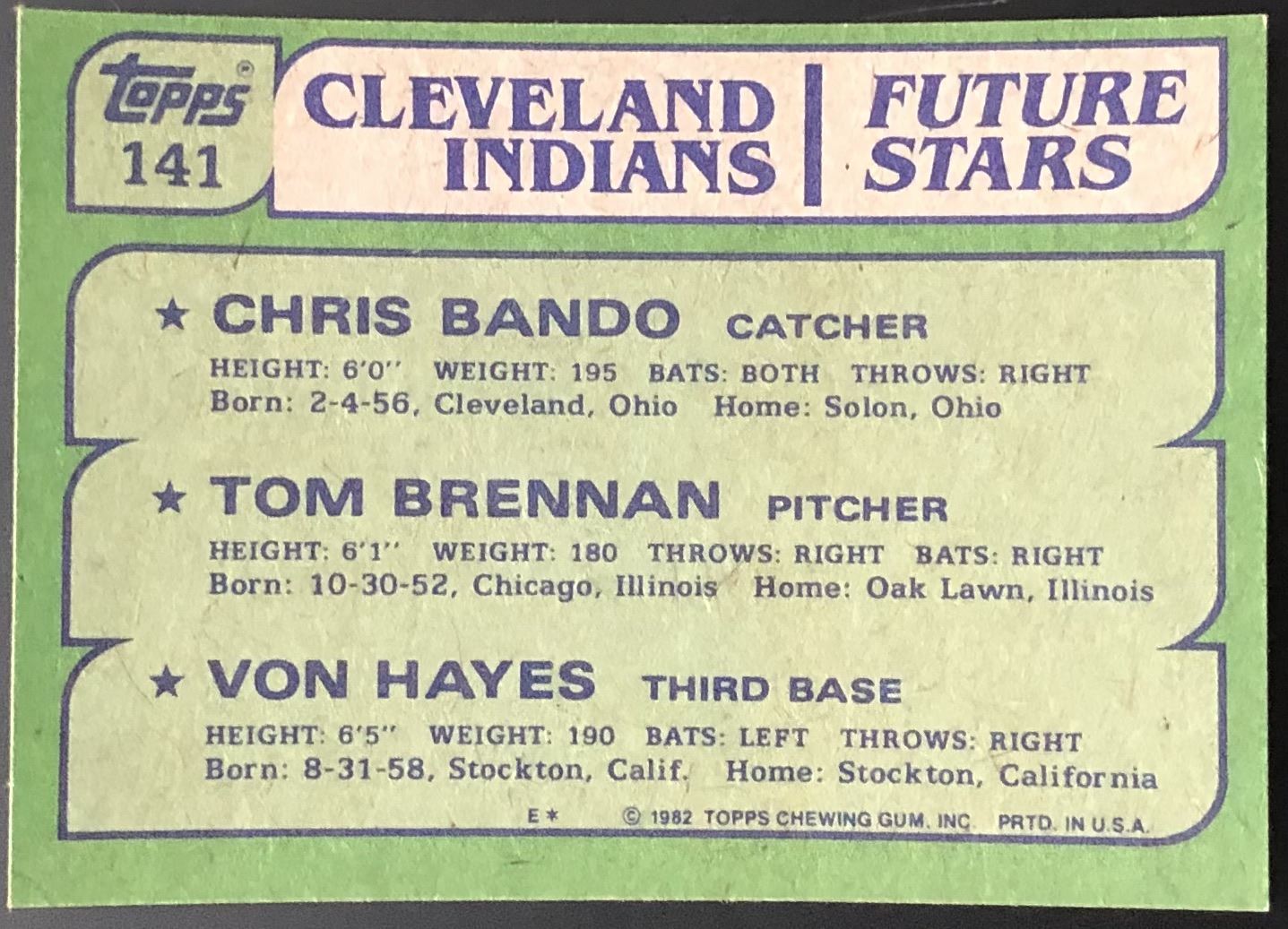 Lot 821 1982 TOPPS VON HAYES ROOKIE CARD