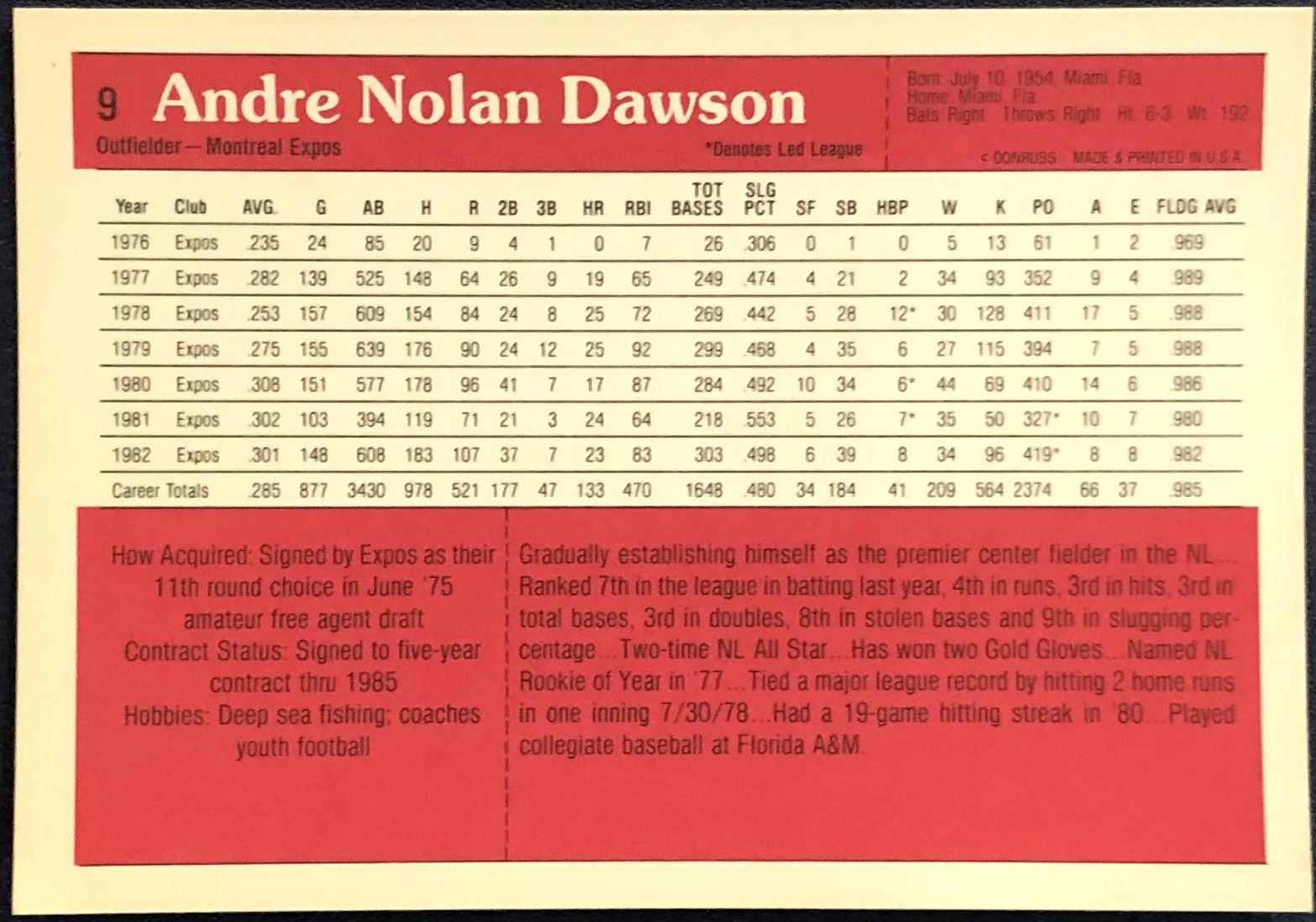 Lot 823 1983 DONRUSS ACTION ALL STARS - ANDRE DAWSON (HOF)