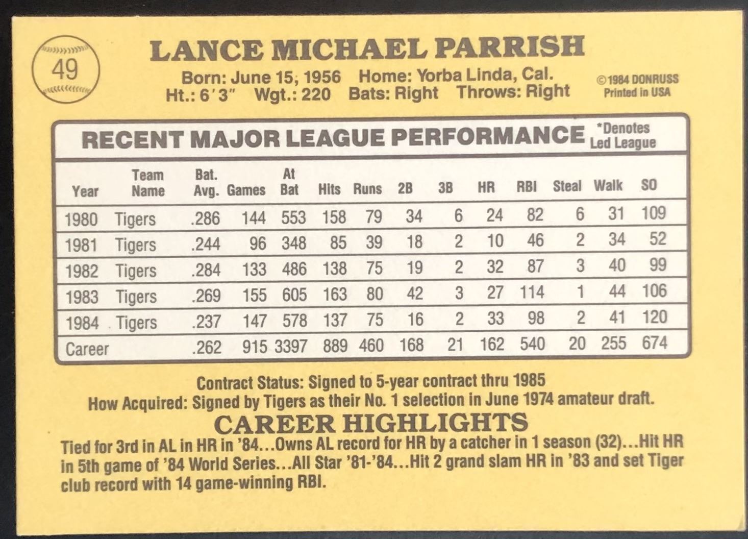 Lot 838 1985 DONRUSS LANCE PARRISH