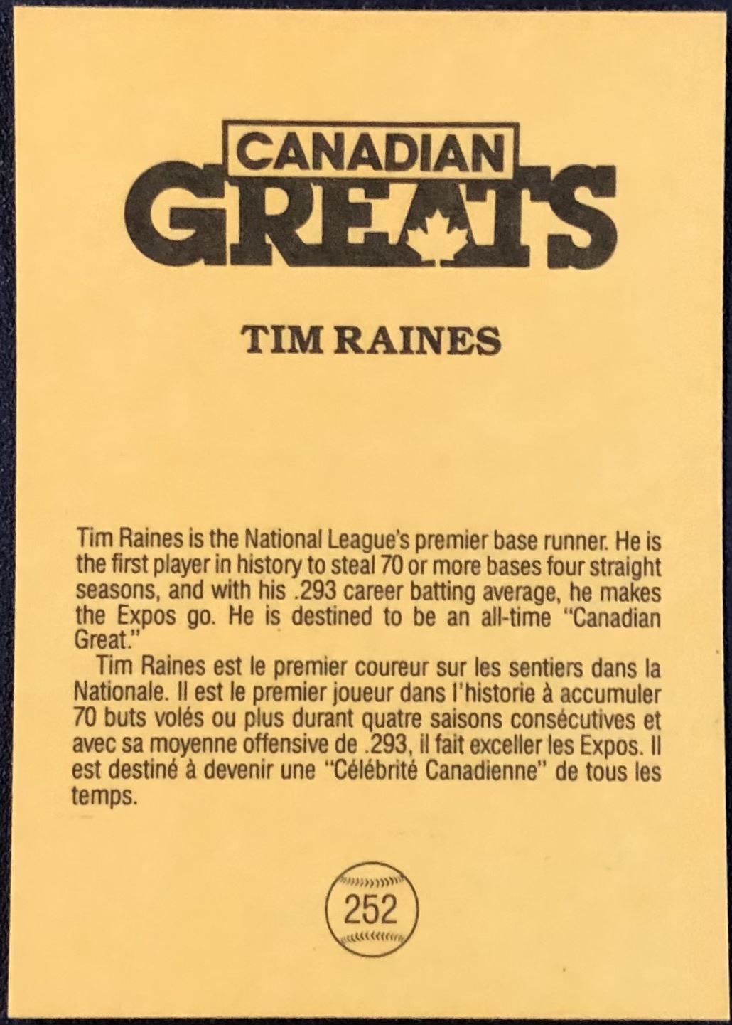 Lot 839 1985 DONRUSS TIM RAINES (HOF)