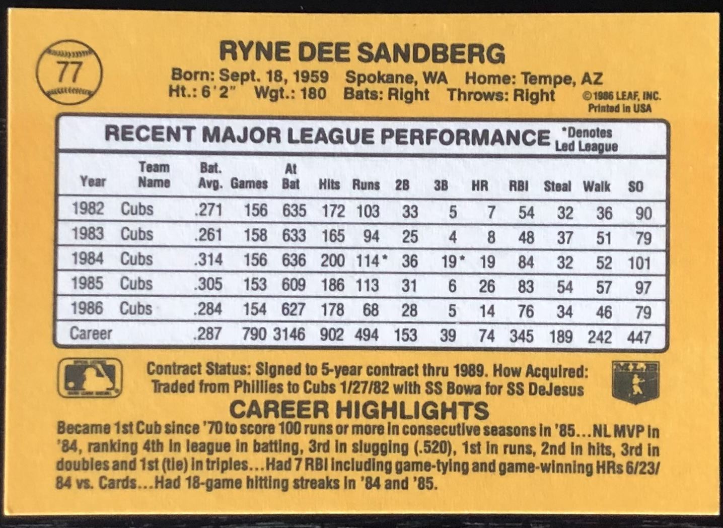 Lot 865 1987 DONRUSS RYNE SANDBERG (HOF)