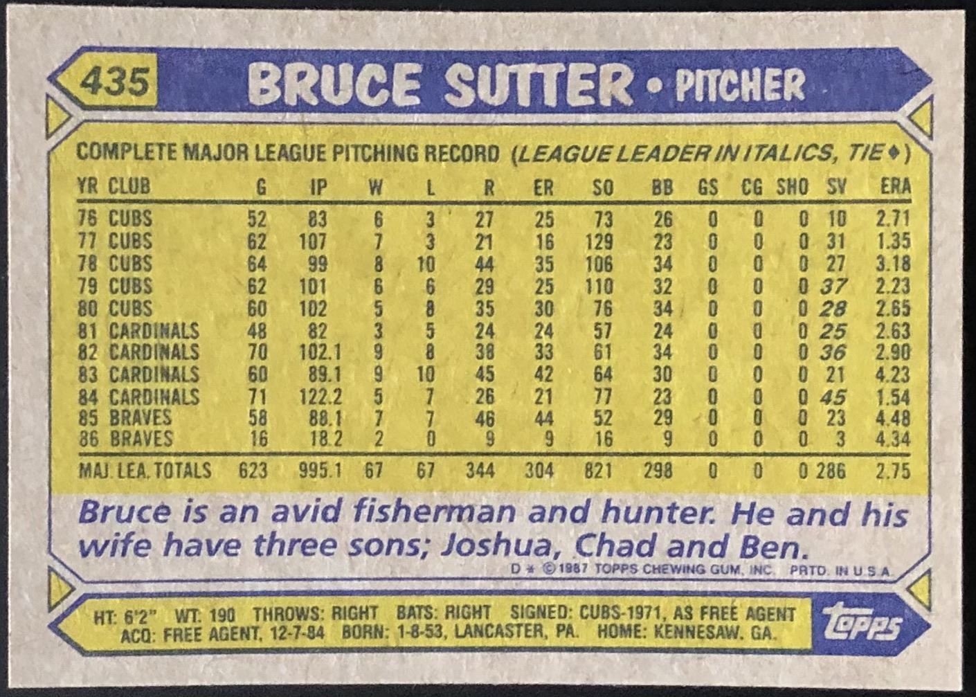Lot 869 1987 TOPPS BRUCE SUTTER (HOF)