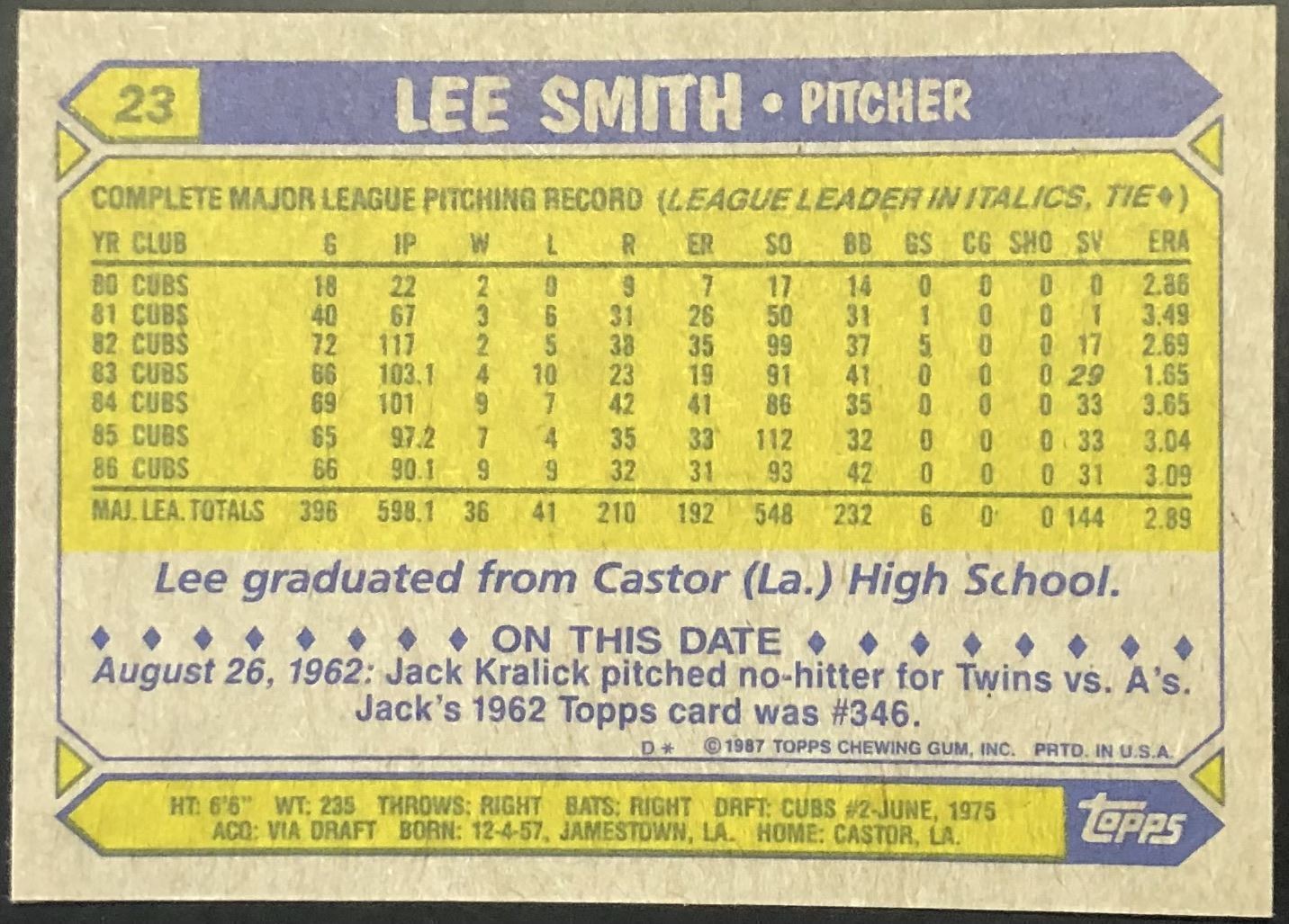 Lot 874 1987 TOPPS LEE SMITH (HOF)