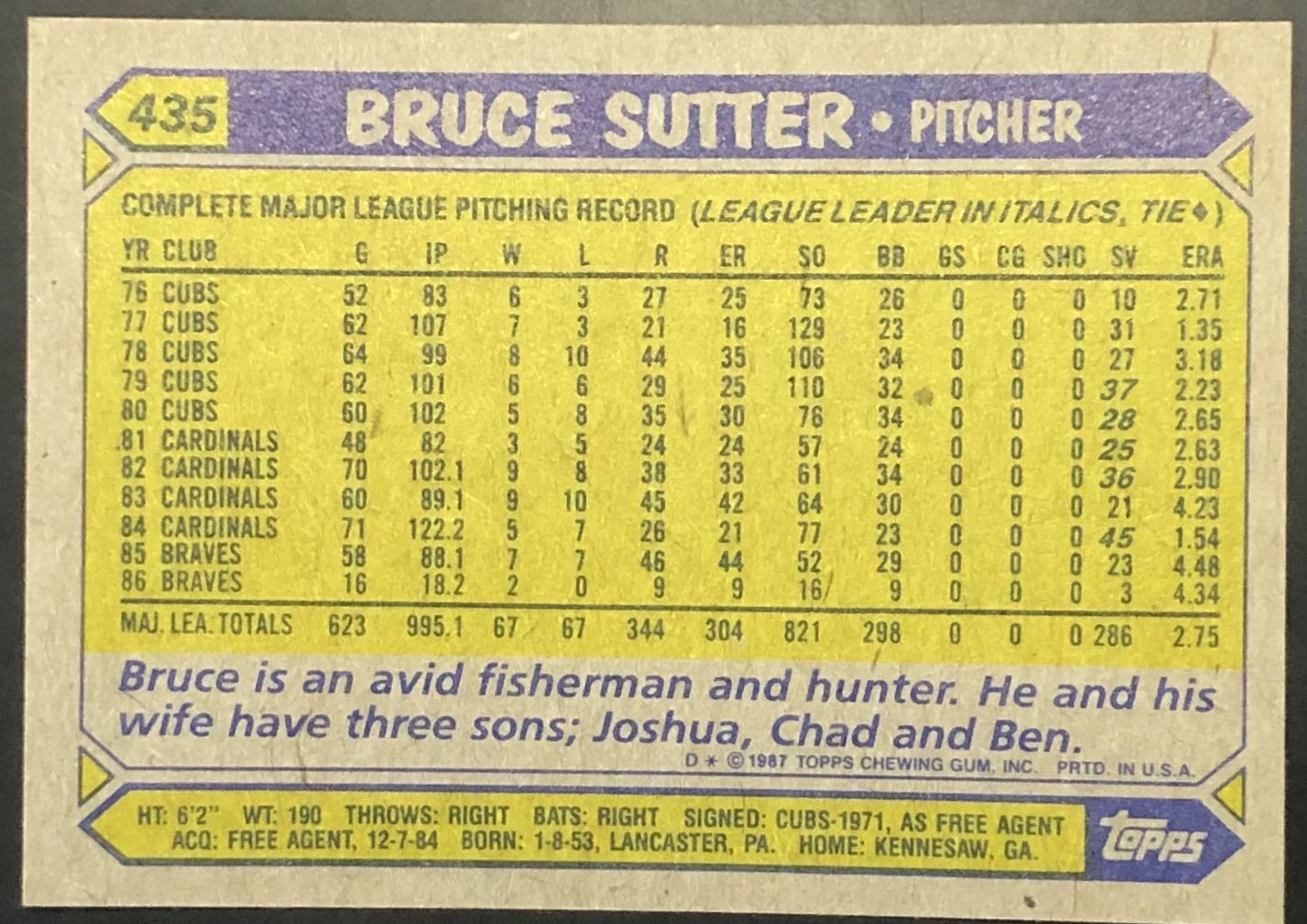 Lot 875 1987 TOPPS MLB BRUCE SUTTER (HOF)