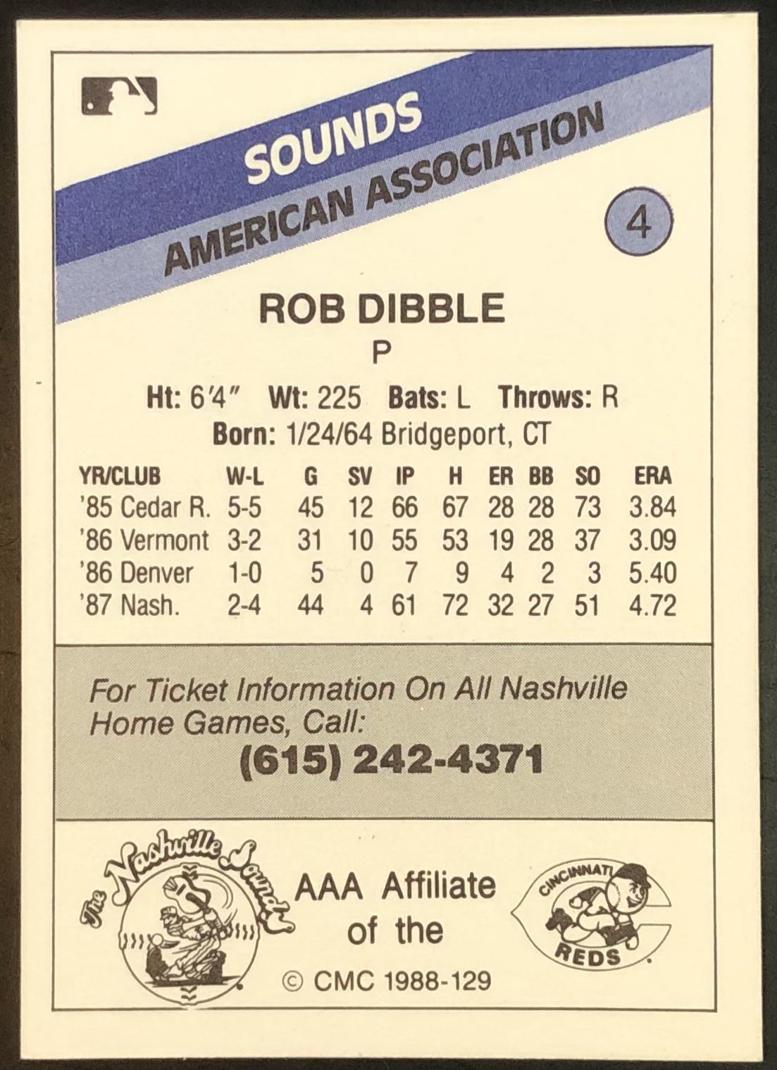Lot 878 1988 CMC ROB DIBBLE MINOR LEAGUE CARD