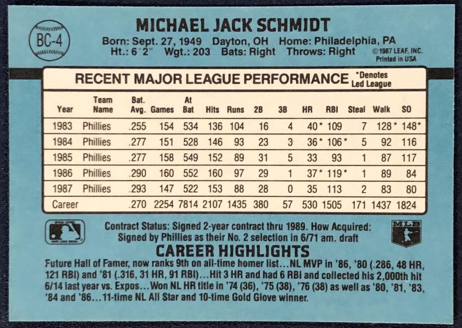 Lot 882 1988 DONRUSS MIKE SCHMIDT (HOF)