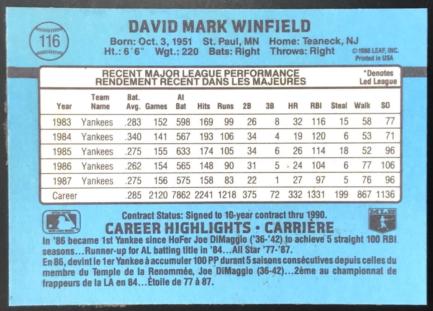 Lot 887 1988 LEAF DAVE WINFIELD (HOF)