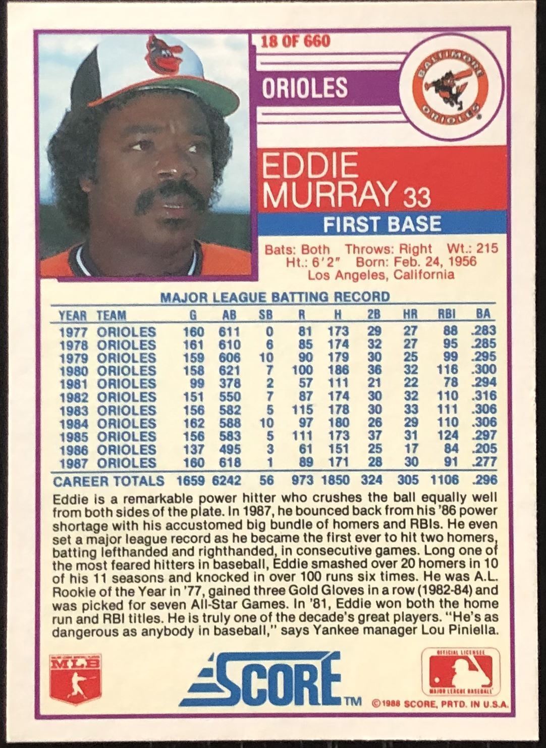 Lot 888 1988 SCORE EDDIE MURRAY (HOF)