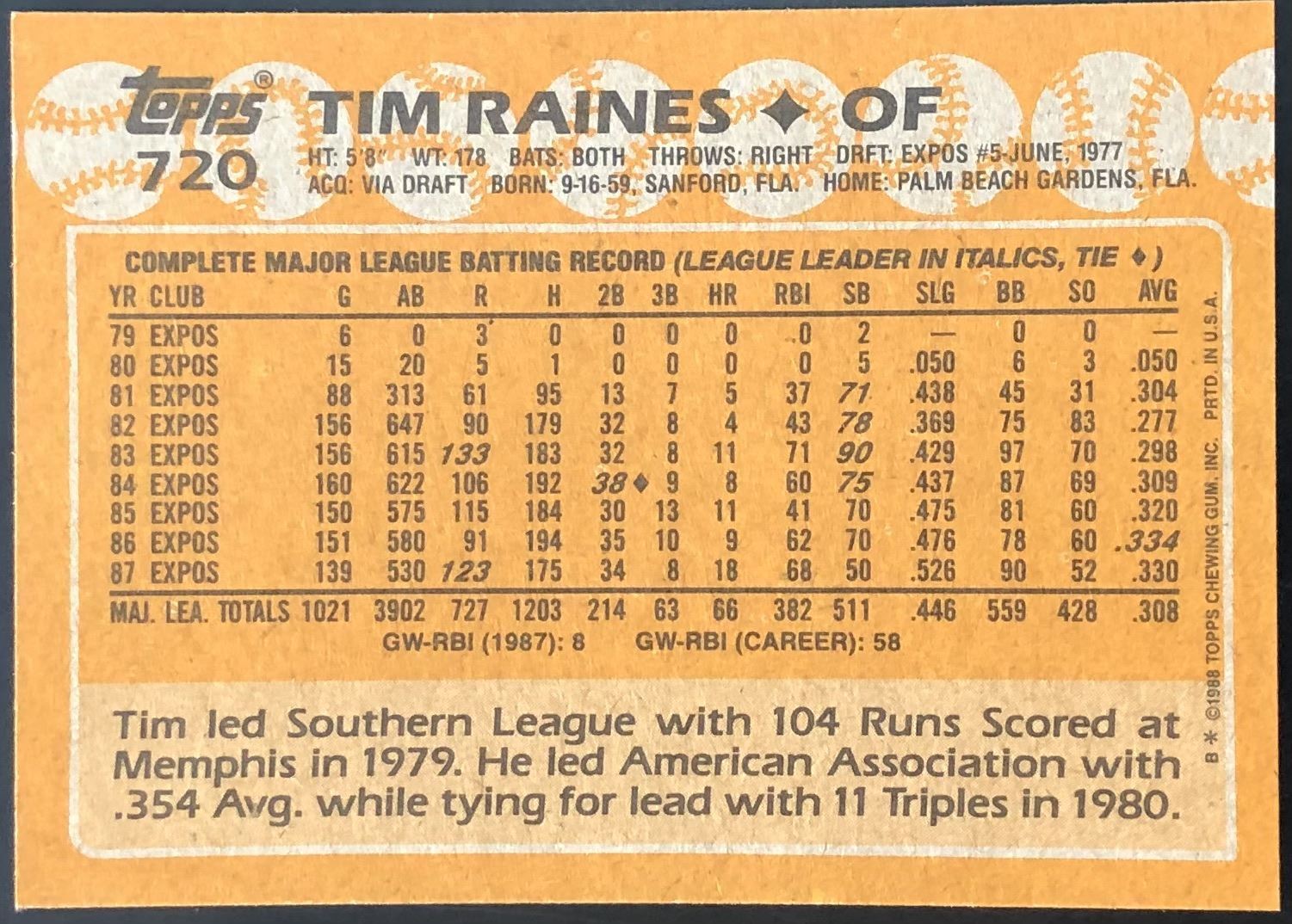 Lot 900 1988 TOPPS TIM RAINES (HOF)