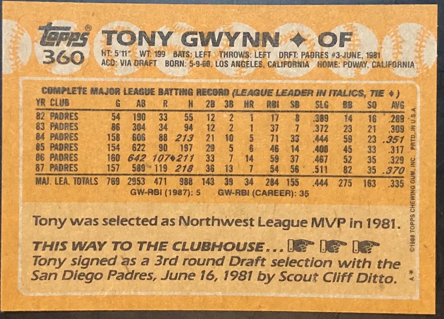 Lot 901 1988 TOPPS TONY GWYNN (HOF)