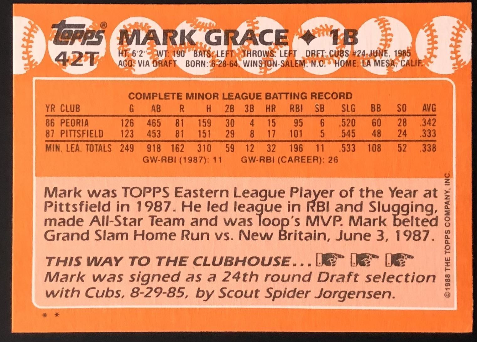 Lot 902 1988 TOPPS TRADED MARK GRACE (HOF) ROOKIE CARD