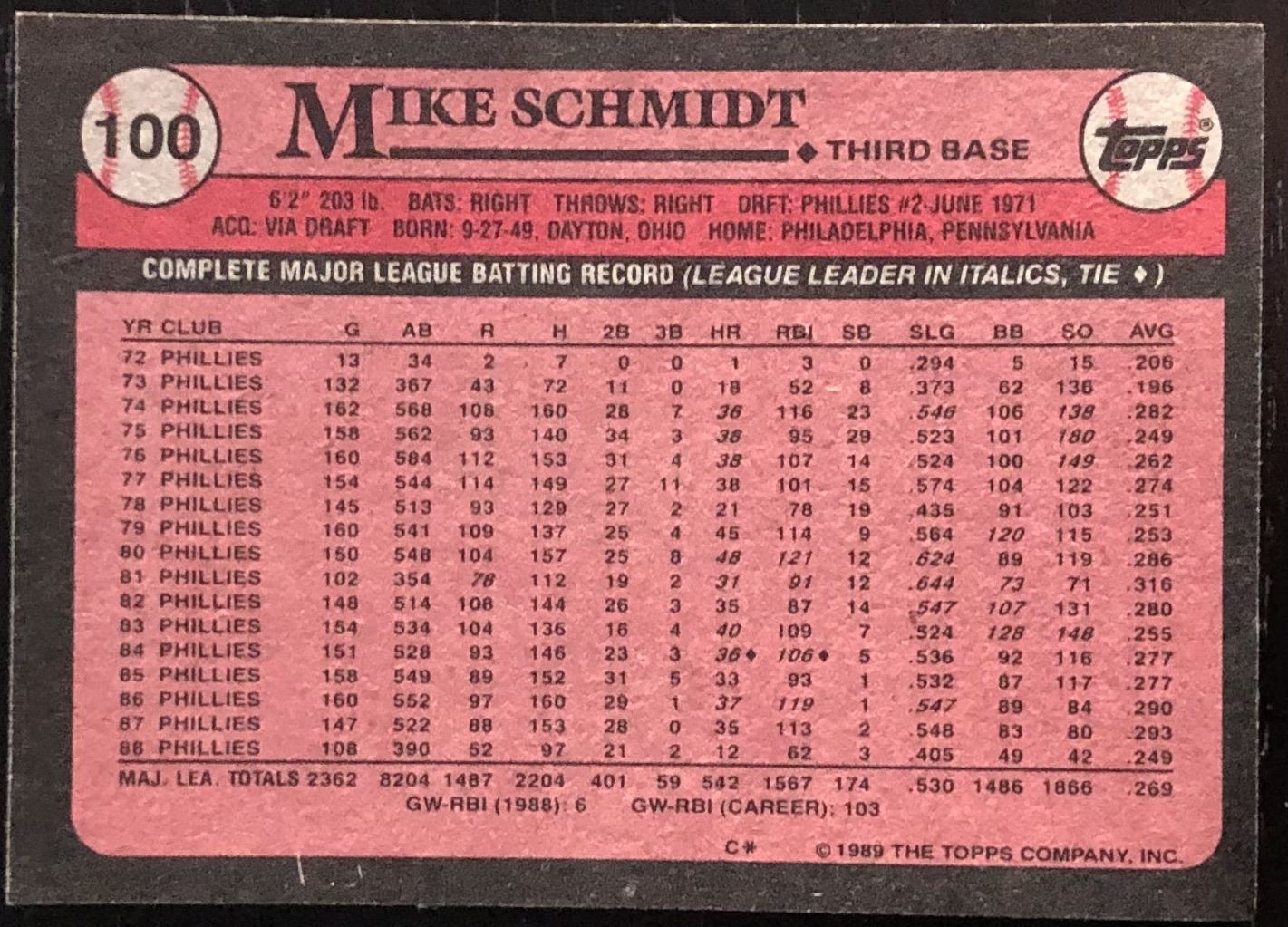 Lot 913 1989 TOPPS MIKE SCHMIDT (HOF)