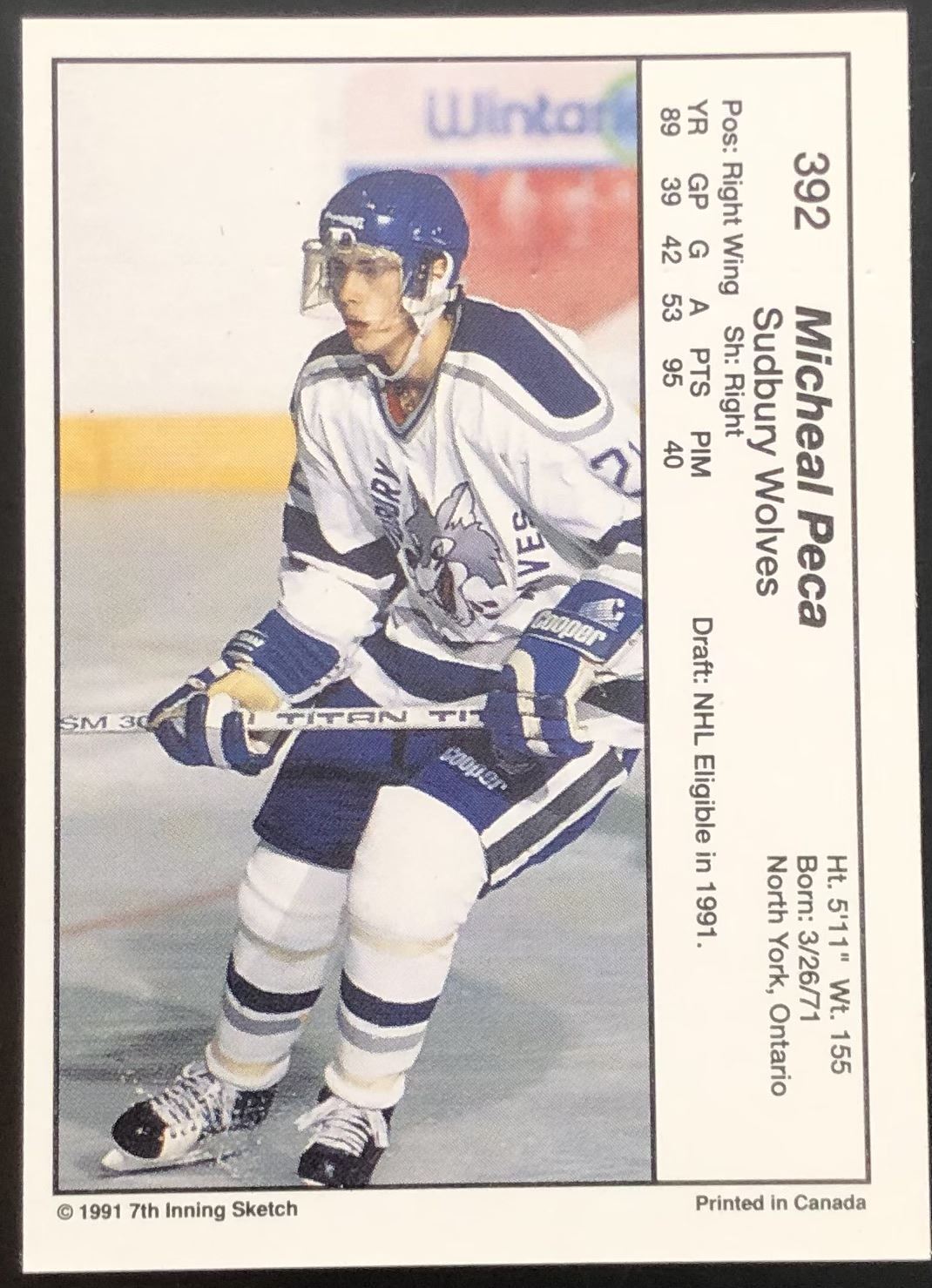 Lot 936 1990-91 7th INNING SKETCH JR. CARD - MIKE PECA