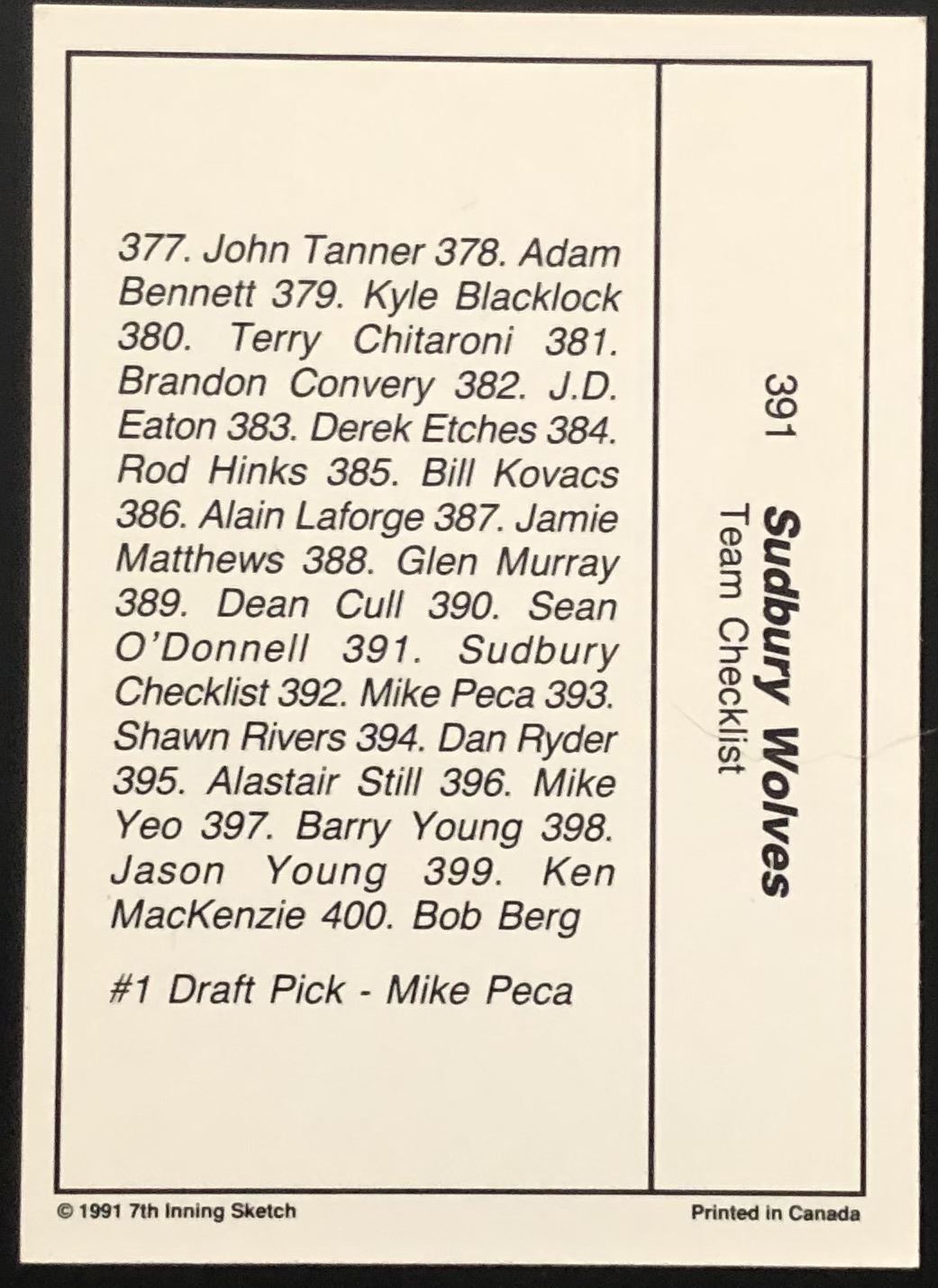 Lot 937 1990-91 7th INNING SKETCH MICHAEL PECA JUNIOR CARD