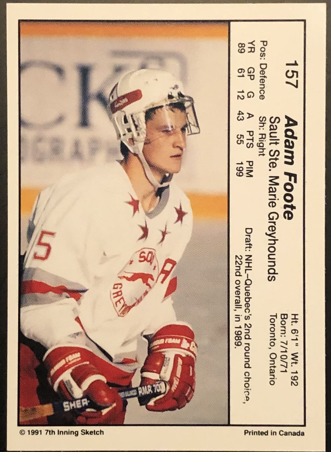 Lot 939 1990-91 ADAM FOOTE JUNIOR CARD
