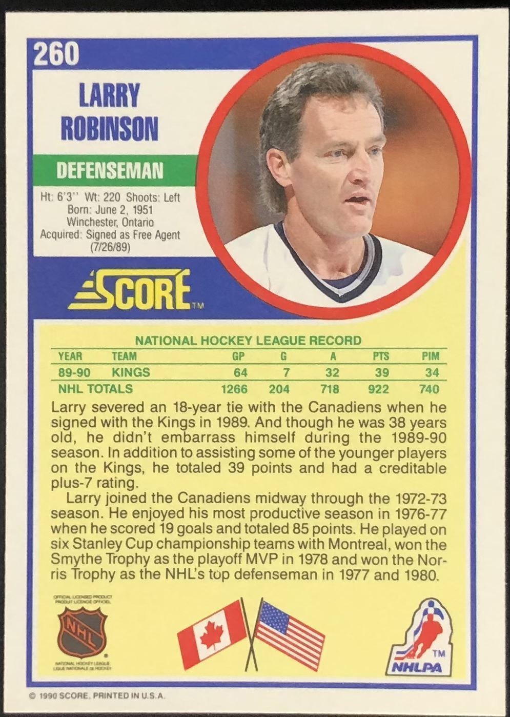 Lot 946 1990-91 SCORE LARRY ROBINSON (HOF)