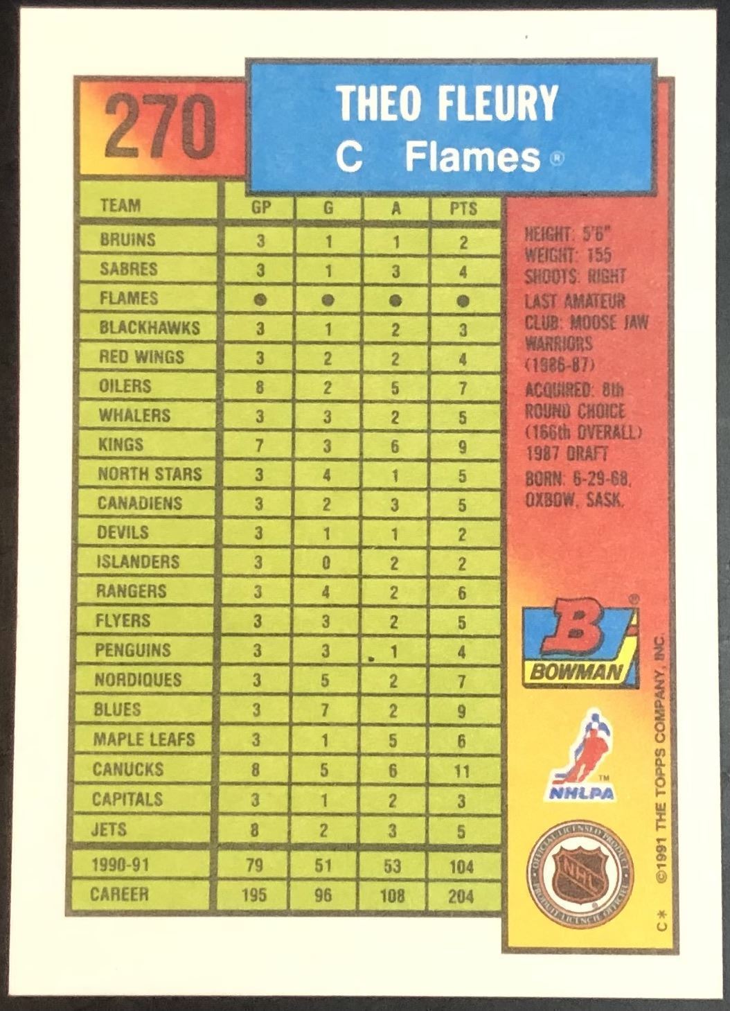 Lot 951 1991-92 BOWMAN THEO FLEURY