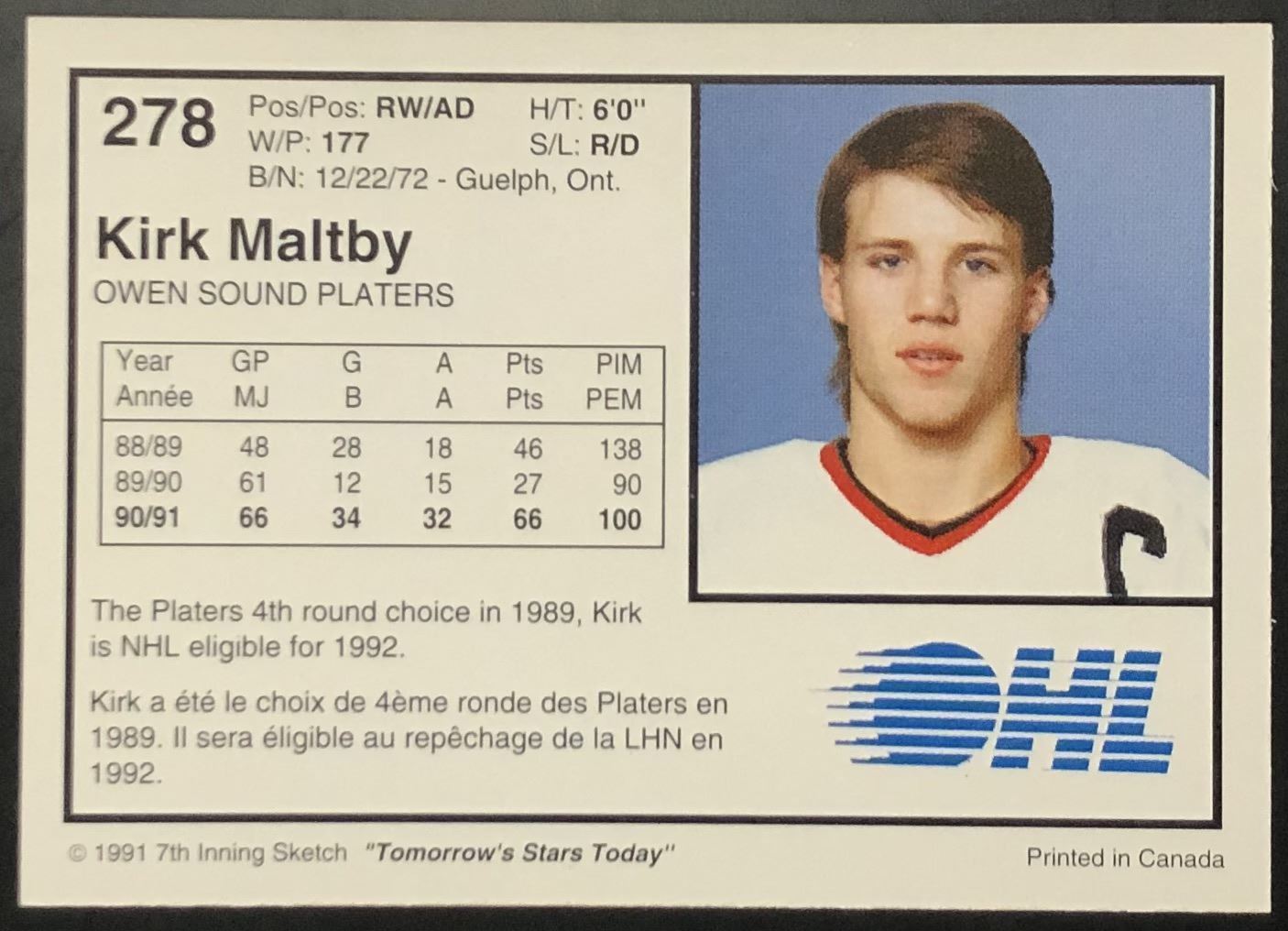 Lot 955 1991-92 JUNIOR CARD - KIRK MALTBY