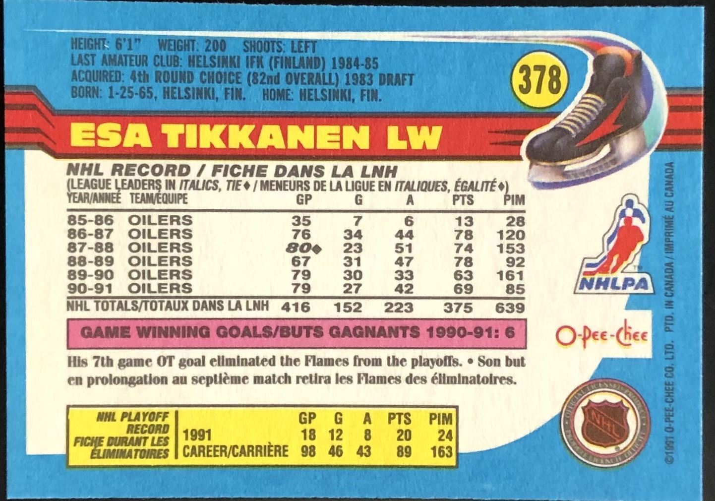 Lot 958 1991-92 O-PEE-CHEE ESA TIKKANEN