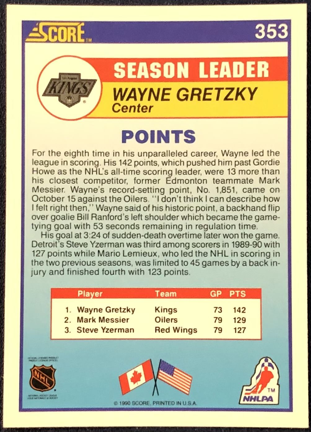 Lot 982 1990-91 SCORE WAYNE GRETZKY (HOF)