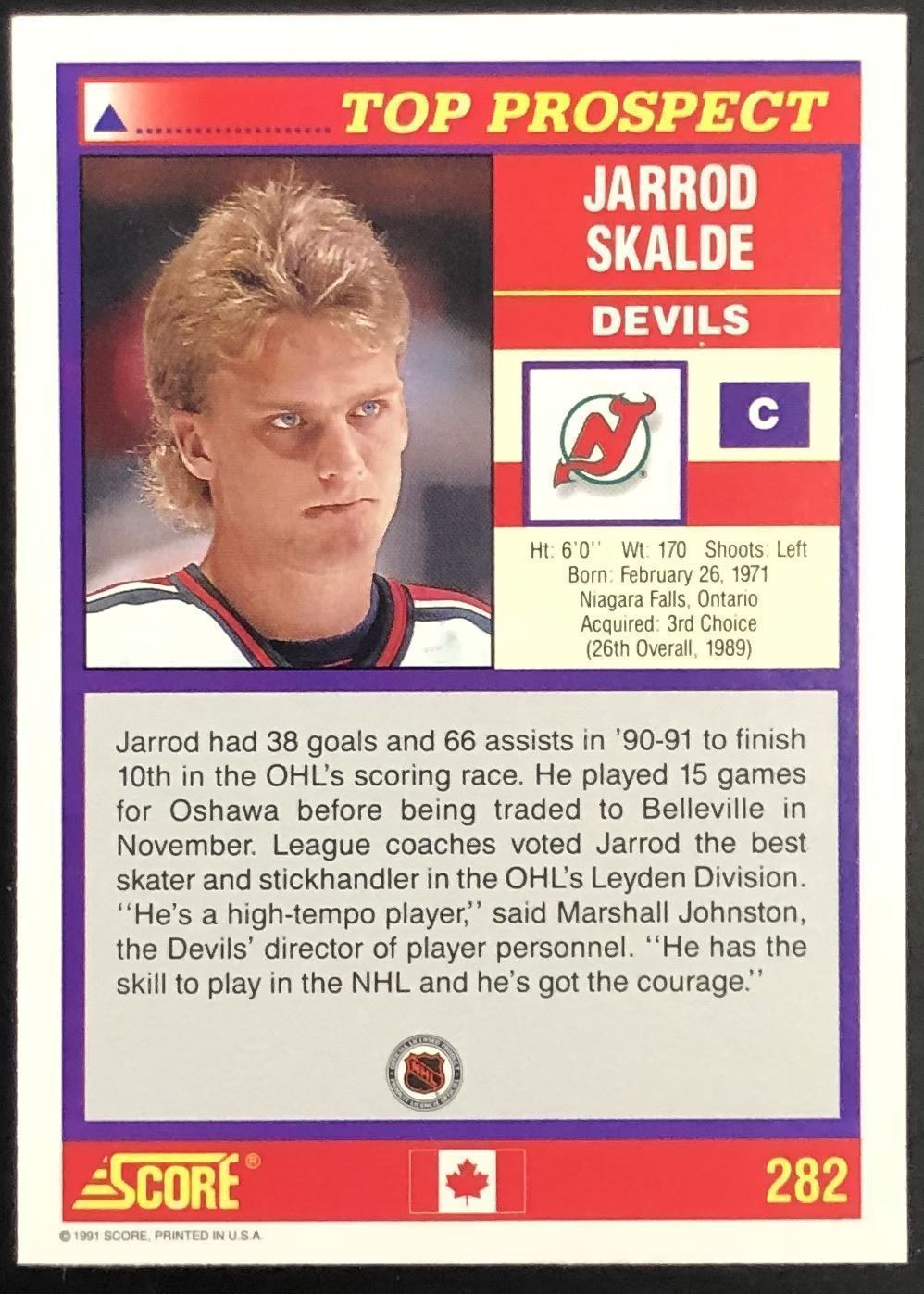 Lot 989 1991-92 SCORE JARROD SKALDE ROOKIE CARD