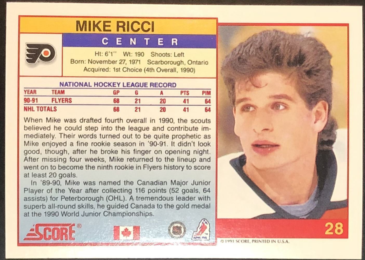 Lot 1002 1991-92 SCORE NHL MIKE RICCI ROOKIE CARD