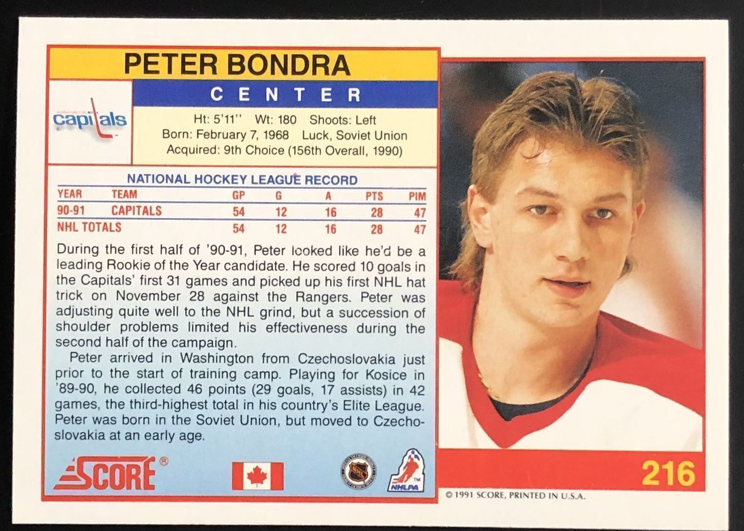 Lot 1024 1992 SCORE PETER BONDRA ROOKIE CARD