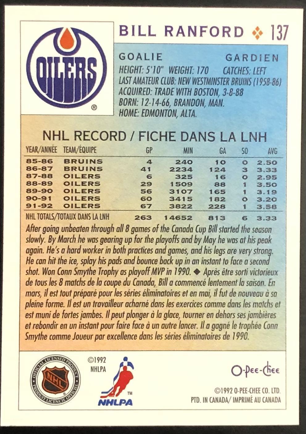 Lot 1029 1992-93 O-PEE-CHEE BILL RANFORD