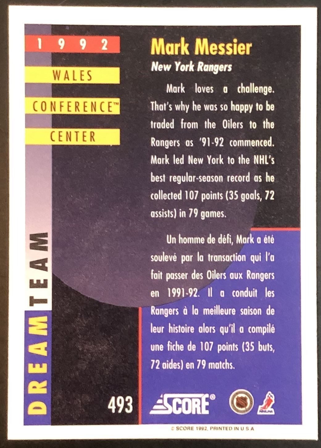 Lot 1040 1992-93 SCORE MARK MESSIER (HOF)