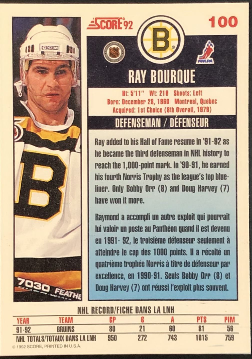 Lot 1046 1992-93 SCORE RAY BOURQUE (HOF)