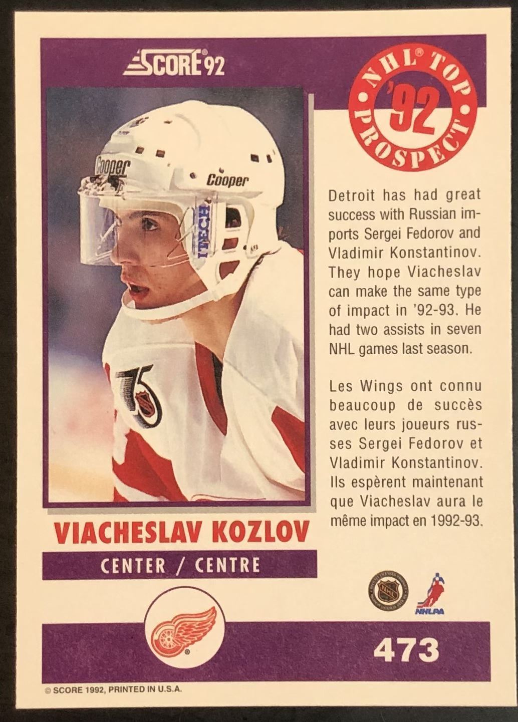 Lot 1051 1992-93 SCORE SLAVA KOZLOV ROOKIE CARD