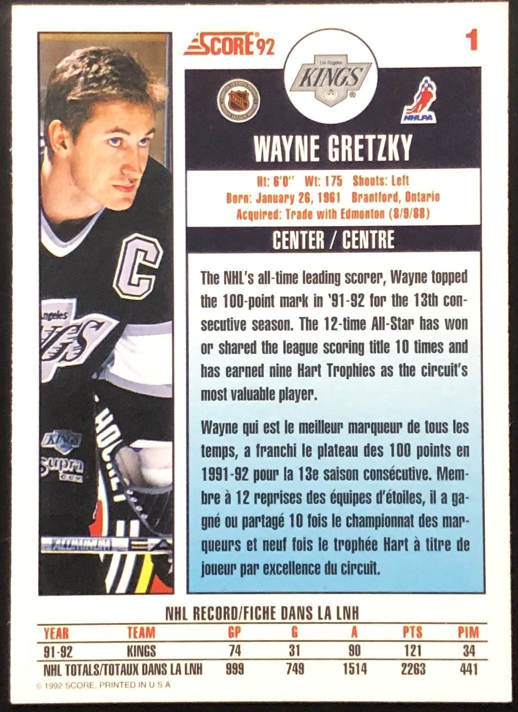 Lot 1052 1992-93 SCORE WAYNE GRETZKY (HOF)